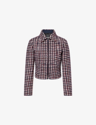 Houndstooth Cropped Knitted Jacket