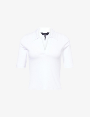 Polo-Collar Short-Sleeve Stretch-Cotton Top