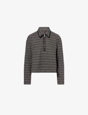 Long-Sleeve Metallic-Knit Stretch-Jersey Top