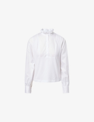Sequin Embellished-Trim Puff-Sleeve Cotton and Modal-Blend Shirt