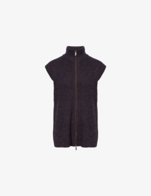 High-Neck Two Way-Zip Ribbed Merino-Wool and Cashmere-Blend Vest