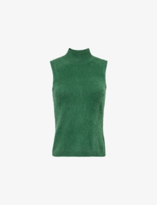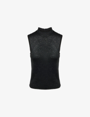 Sequin-Embellished High-Neck Shimmer-Knit Vest
