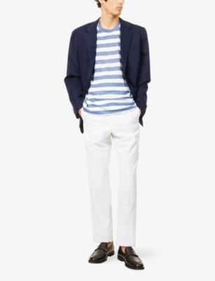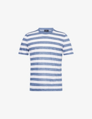 In our collection of printed T-shirts for men, discover bold illustrations, statement logos and classic fits to freshen up your basics wardrobe. From photography and animations to familiar brand motifs on the chests, you'll find an option to suit you here. Graphic-print tees pair well with turned-up chinos and trainers for weekend days - or why not smarten yours up with a fitted jacket and tailored trousers?