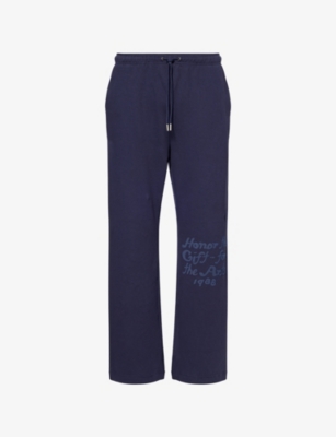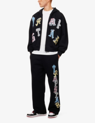 Initial two-slip-pockets straight-leg relaxed-fit cotton-jersey jogging bottoms- Price:£130.00