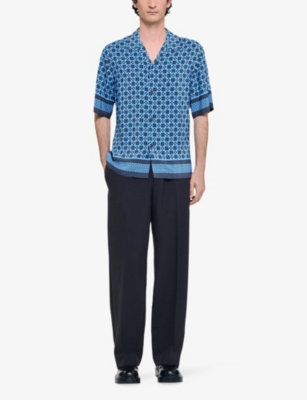 Square Cross-Print Short-Sleeve Satin Shirt- Discount price:£174.30