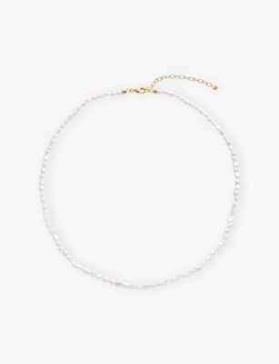 Rio 18ct yellow gold-plated vermeil sterling-silver, peach moonstone, citrine and tigers-eye beaded necklace- Price:ÂŁ210.00