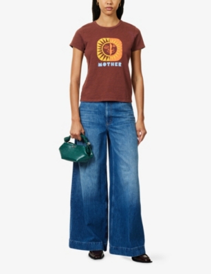 Women's high-rise jeans are at the heart of the collection and are as popular today as they were in the 70s. Mother fashion explores jeans in skinny, straight and flared cuts, as well as all lengths. Colours come in a myriad of blues, as well as black and grey rinses, fresh white and a sprinkling of bright shades. Branded hardware, contrast stitching and logo embroidery usually come as standard, while details such as waist ties, oversized pockets and embroidered motifs appear on stand-out items. Raw hems and ripped knees will dial up a laid-back look.
