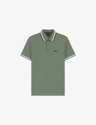 Logo-embroidered stripe cotton-piqué polo shirt- Discount price:£59.00