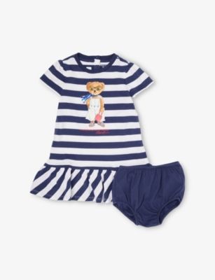 Brand-embroidery short-sleeves cotton-jersey dress and bloomer set 3-24 months- Price:£79.00