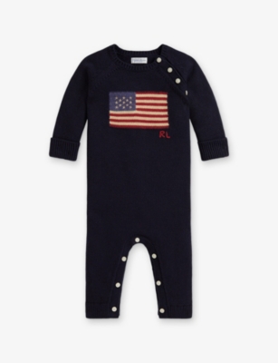 Flag Intarsia Cotton Knit Coverall 0-12 Months