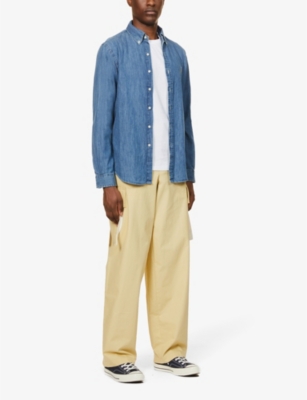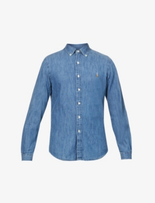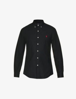 Long-sleeved logo-embroidered slim-fit stretch cotton-poplin shirt- Price:£135.00