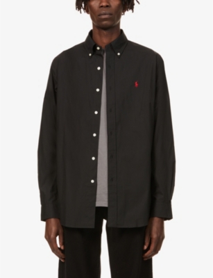 Long-sleeved logo-embroidered custom-fit stretch cotton-poplin shirt- Price:£135.00