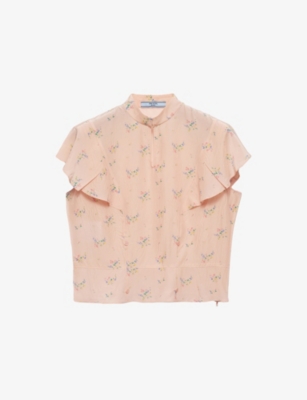 PRADA: Floral-Print Pongé Woven TopPRADA: Floral-Print Pongé Woven Top