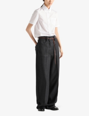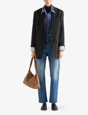 PRADA: Arqué brand-plaque leather shoulder bagPRADA: Arqué brand-plaque leather shoulder bag