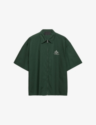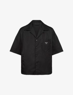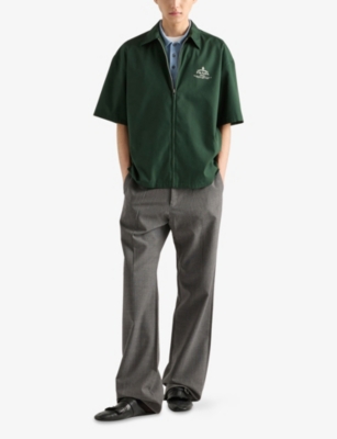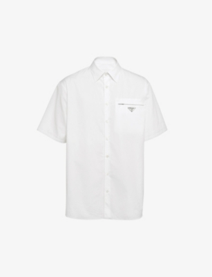 Brand-plaque short-sleeved regular-fit cotton shirt