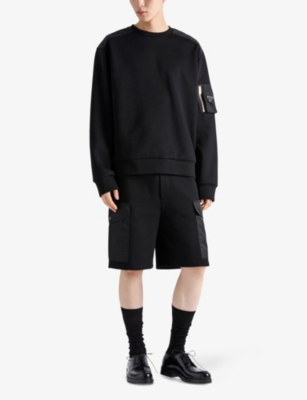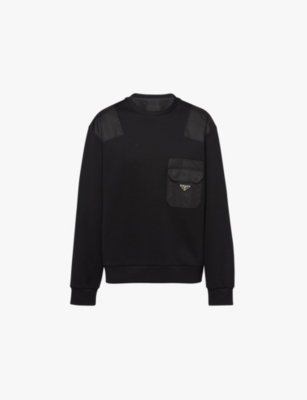 Re-Nylon Patch Crewneck Cotton-Jersey Sweatshirt