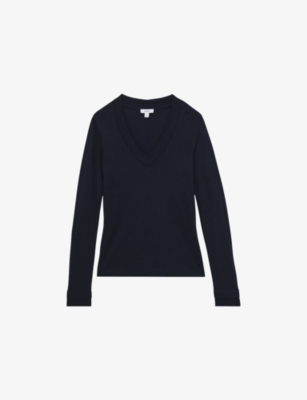 Brady V-neck fine-knit top