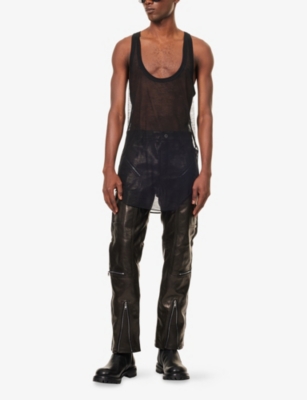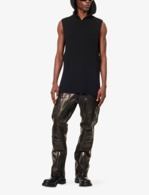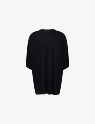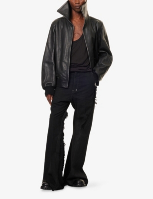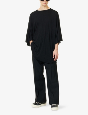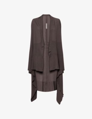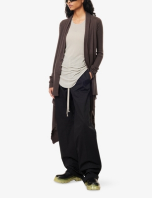 Discover all that the Paris-based label has to offer with our extensive Rick Owens collection. Look out for the signature design touches that have bestowed cult status upon the brand: waterfall draped jackets and cardigans, dropped crotch trousers, stacked sole platforms and raw asymmetric hems - all in the moody colour palette that the designer prefers. Even the most minimal of these garments are crafted in lavish fabrics. Explore knitwear in pure cashmere, smooth leather jackets, party pieces in slinky silk and velvet and versatile basics in the softest woven yarns. Ever adaptable, a Rick Owens item can be styled as part of a head to toe runway look, or to add an unorthodox layer to everyday ensembles.