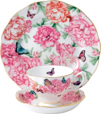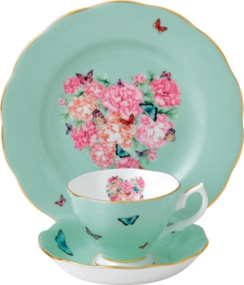 Leave a little room for tea and cake served on Royal Albert tableware. Distinctive floral designs have been gracing social gatherings for over a century, these romantic pieces were first produced at The Albert Works by Thomas Wild and his sons, who were committed to making affordable ceramics for everyday use. The swirling flowers in vibrant colours epitomised a quintessentially English style, and have come to be some of the best-selling china patterns of all time.