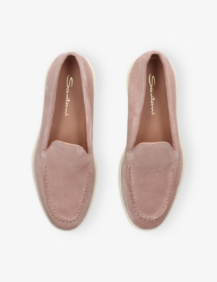 SANTONI: Almond-Toe Suede LoafersSANTONI: Almond-Toe Suede Loafers
