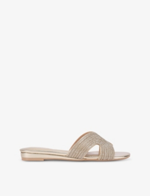 Pose Crystal and Pearl-Embellished Woven Flat Mules- Discount price:£59.00