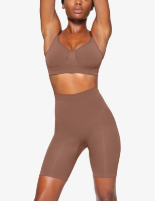 Exhibiting the solutions-oriented brand's streamlined aesthetic, our collection of SKIMS shapewear includes signature options alongside a variety of exclusive pieces. Tailored to suit wearers of all shapes and dress sizes, the garments are made from a lightweight fabric that's discreet while feeling ultra-comfortable to the touch. Styles are available in skin-tone shades and with ample stretch, so they can be worn from your morning commute to your evening downtime.