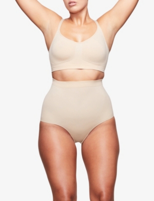 SKIMS shapewear is a revolutionary range that provides figure-enhancing support. Specialising in underwear, shapewear and loungewear, Kim Kardashian's label seamlessly fuses technically constructed designs with long-lasting comfort. SKIMS was established with an ambitious mission at its core: to provide choices that suit everybody. Its inclusive array of colours and sizes empowers SKIMS fans of all races and body shapes to find a flattering option.Â