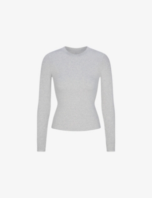 Round-Neck Long-Sleeve Stretch-Cotton Jersey Top
