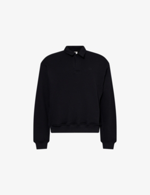 Ribbed Polo-Collar Cotton-Jersey Sweatshirt