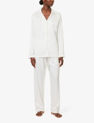 Contrast-piping straight-leg stretch-woven pyjama set