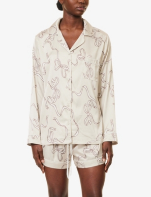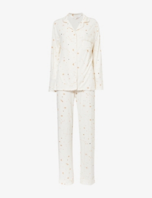 Graphic-print straight-leg stretch-woven pyjama set