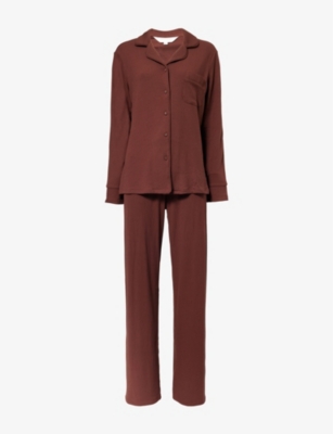 Stretch Scallop Long-Sleeve Modal-Jersey Pyjama Set