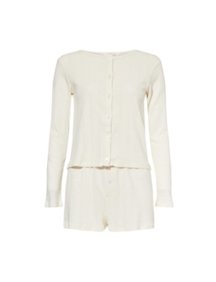 Pointelle Open-Work Cotton-Jersey Pyjama Set