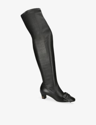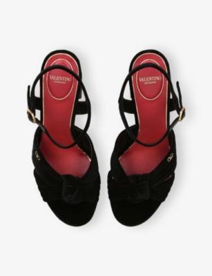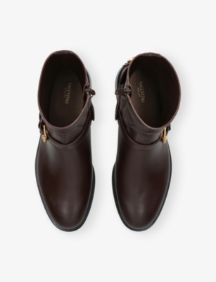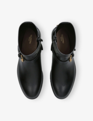 Browse our Valentino Garavani footwear selection for laid-back sandals crafted from soft and supple leather, ideal for those warm-weather days. Bright colours, from lemon yellow to emerald green, make an instant impression, as do embellishments such as rebellious studs and metal hardware. Sliders and flip-flops are hassle-free footwear for afternoons spent by the pool. Valentino Garavani ankle boots are year-round favourites, especially when you choose versatile shades of midnight black and chocolate brown.Â