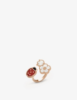 Lucky Spring Between the Finger 18ct rose-gold carnelian, mother-of-pearl and onyx ring- Price:£6,400.00