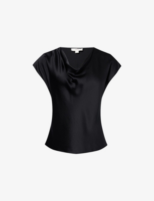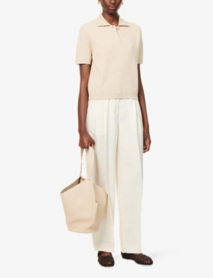 Polo-Collar Short-Sleeves Wool-Blend Top