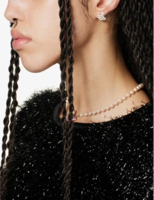 Bas Relief yellow-gold tone brass, pearl and Swarovski crystal choker- Price:£195.00