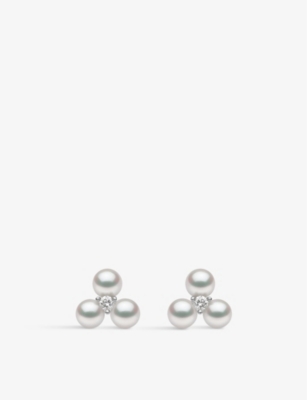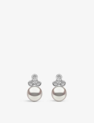 Trend 18ct white-gold, 0.162ct brilliant-cut diamond and freshwater pearl earrings- Price:£1,200.00