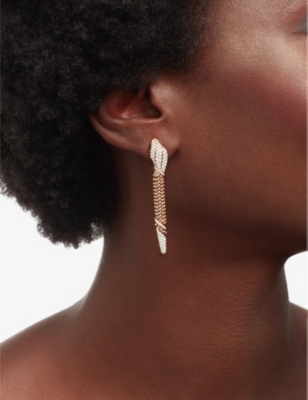 Serpenti Viper 18ct rose-gold, 1.74ct brilliant-cut diamond and onyx drop earrings- Price:£23,300.00