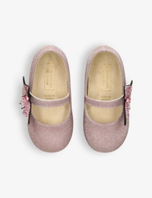 Lou Babe bow-embellished silk and leather-blend crib shoes 0-12 months- Price:£260.00