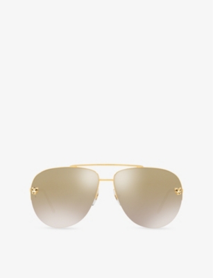 Wildly popular throughout the ages and rightfully making yet another comeback, women's aviator glasses are the timeless accessory that we just can't get enough of. Well-loved and easily recognisable by their dainty metal frames and large glass lenses, this style is chic and flattering on any face shape and a favourite of many. Although a signature design, this selection offers a variety of frames to help you showcase your individual style and personality. Choose from bold women's black aviator glasses that are guaranteed to frame your face and make a statement, or more subtle, classic metallic frames in a range of varying shapes from round, oval and hexagonal. Bring a touch of class and style to every look with a signature pair of women's aviator glasses from the Selfridges collection, full to the brim with beautiful designer pieces that you're sure to fall in love with and want to wear again and again.