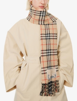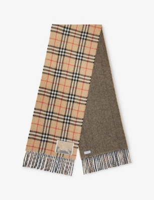 If you gravitate towards the sleek and understated, opt for a neutral-toned iteration. Mineral hues of granite, charcoal and sand offer versatility, making these scarves easy to style with a biker jacket and jeans or a longline trench. For a subtle pop of pattern, discover vintage-inspired check designs and classic tartan prints. Rich burgundies and dark greens evoke images of Scotland, where some of the finest cashmere hails from.