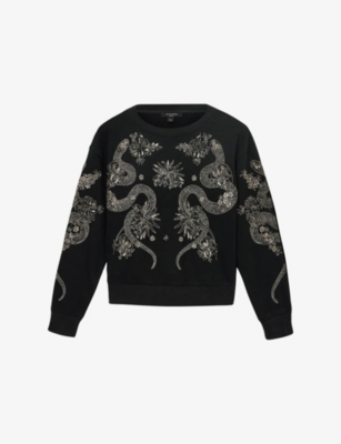 ALLSAINTS: Alenka Pippa Snake-Embellished Regular-Fit Cotton HoodyALLSAINTS: Alenka Pippa Snake-Embellished Regular-Fit Cotton Hoody
