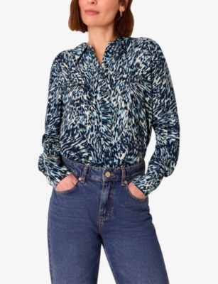 Leopard-Print Long-Sleeve Pleated Woven Shirt- Discount price:£49.00