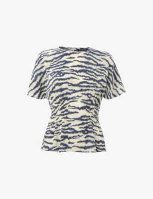 Feathered-Tiger Shirred Woven Blouse- Discount price:£49.00