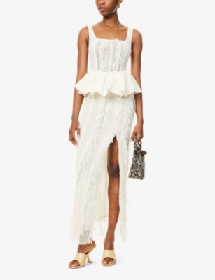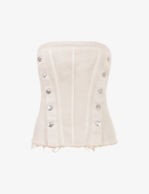 V-Neck Ruffle-Hem Cropped Linen-Blend Top- Discount price:£149.40