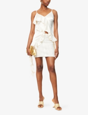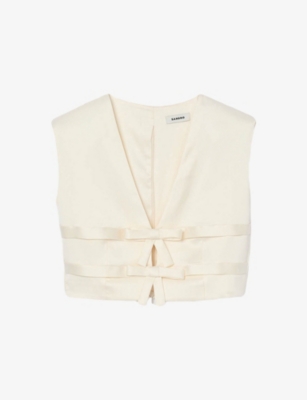 Tie-Front Sleeveless Cropped Satin Top- Discount price:£131.40