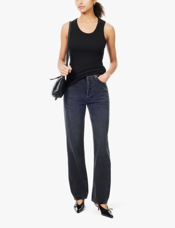 - Relaxed fit, asymmetric round-neck, one cap sleeve, darts at back, draped