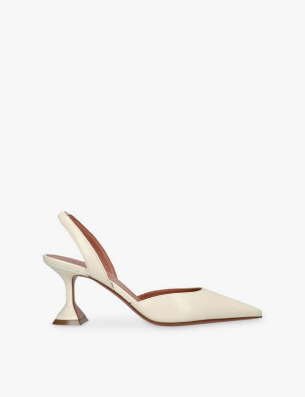 - Closed pointed toe, slingback strap, kitten heel
