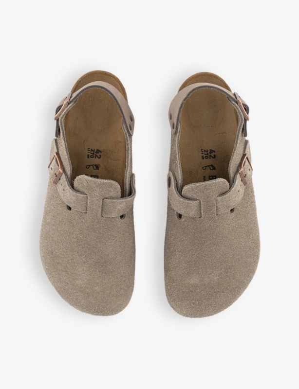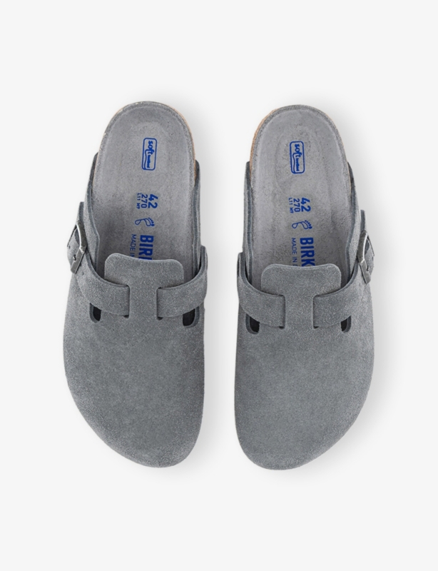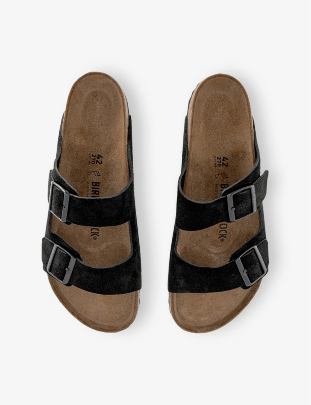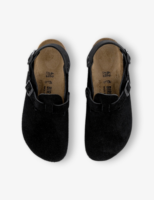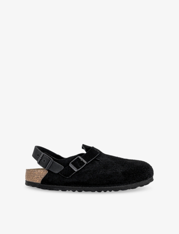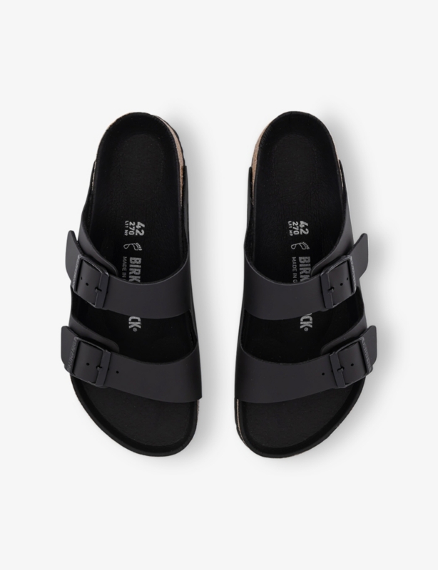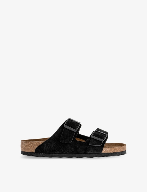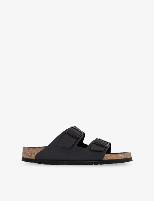 - Round open toe, double straps at front, logo-engraved buckles, metal hardware